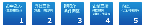 その後、VISAなど入社準備になります。VISAなどの手続きは、こちらの「内定から就職まで」をご覧ください。 |
